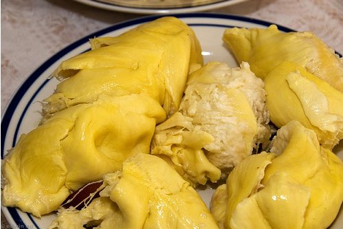 Gracias a mi gran amigo Chee Wai Lee, he probado un fruto peculiar de su tierra -Singapur-. El fruto en cuestión se llama Durian. Su aspecto, como el de una sandía pero con «pinchos» es aterrador. Las palabras de advertencia de mi amigo, me hacian aventurar el reto al que me iba a someter: probar esa fruta.