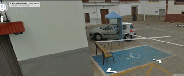 Pues esto me he encontrado revisando los alrededores de mi tierra (Jaraiz de la Vera – comarca de la vera – Cáceres). Y es que manda huevos, ¿eh? El banquito en la plaza de aparcamiento de minusválidos, será para que descanse al salir del coche … anda queeeee…..