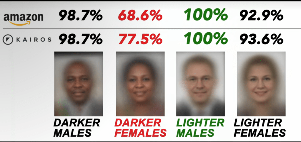 Se puede leer más sobre el problema del sesgo codificado en este artículo ( https://www.media.mit.edu/articles/facial-recognition-software-is-biased-towards-white-men-researcher-finds/ )
