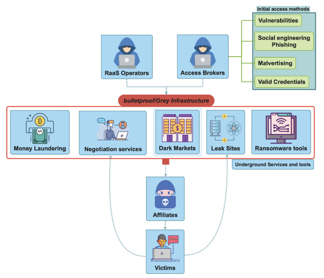 El modelo Ransomware-as-a-Service (RaaS) ha llevado la ciberextorsión a otro nivel. Los desarrolladores de ransomware no siempre son los atacantes: alquilan sus herramientas a afiliados que ejecutan los ataques. En esta cadena delictiva también participan brokers de acceso, plataformas de pago en la dark web y servicios de soporte. Así, se reduce el riesgo para los autores intelectuales y se maximiza la escala. De ahí que casi todos los ataques sean leves modificaciones de una de las grandes «familias» de ransomware. La importancia de los CERTs se significa en este hecho. Ya que una vez identificada la familia (y los CERT proporcionan reglas de YARA,etc) se puede (rápidamente) instrumentar la mitigación (o almenos impedir el avance de infección hacía otros equipos).